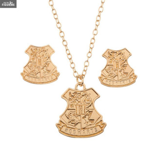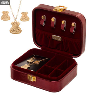 Pack with a jewelry box, a necklace and a pair of Hogwarts earrings. The manufacturer is Bioworld.