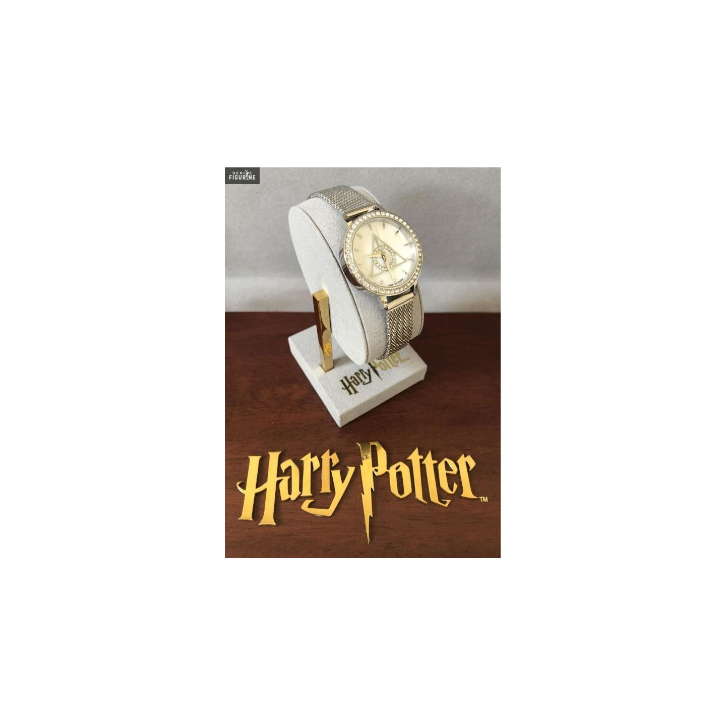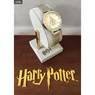 Here is a very nice watch with in its center the emblem of Deathly Hallows. For those who do not know it, relics are three objects that according to a legend, were offered by Death itself to three wizards. We have the elder wand, the resurrection stone, and the cloak of invisibility. Note that the watch is encrusted with Swarovski crystals.