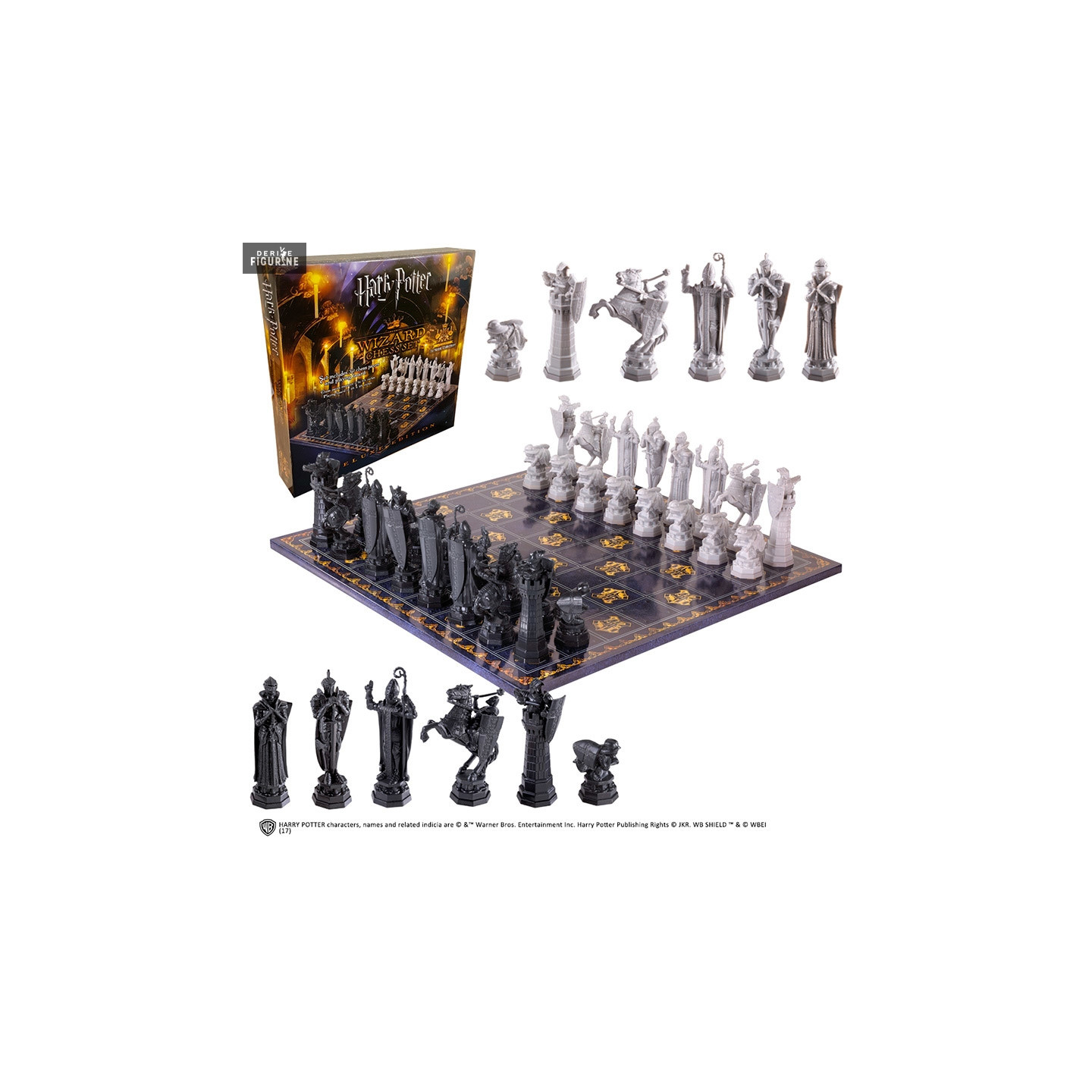 Harry Potter chess game. The tray measures approximately 47x47 centimeters and the pieces between 5 and 12 centimeters and are made of ABS/PVC. The manufacturer is Noble Collection.