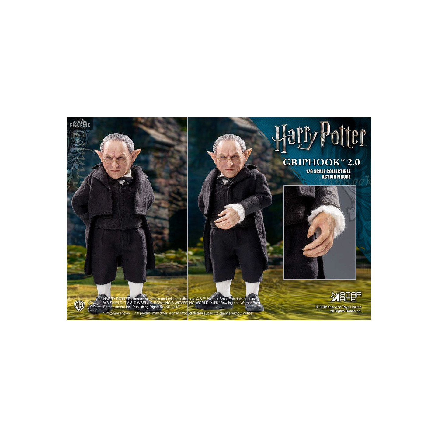 As you probably know if you're a fan of Harry Potter, Griphook is a goblin working at Gringotts Bank. On this version 2.0, he wears more glasses and does not have the same clothes. On the other hand, what does not change is that it is sold with accessories and interchangeable parts.
