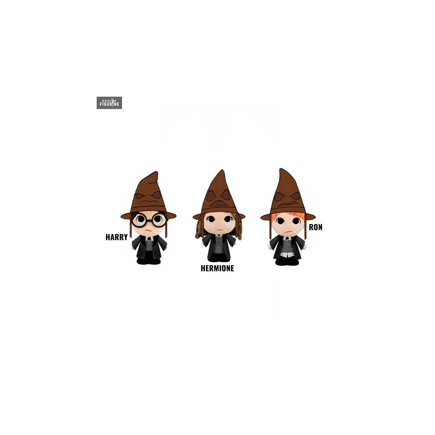 Official plush of your choice between Hermione Granger, Ron Weasley or Harry Potter (with the Sorting Hat) measuring about 18 centimeters. The manufacturer is Funko.