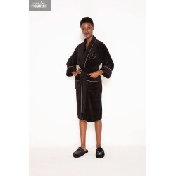 Made from 100% polyester, it features a velvety texture that retains warmth — great for post-shower comfort or lazy weekends. The contrasting trim adds structure to its classic silhouette, and the large front pockets are both stylish and functional.