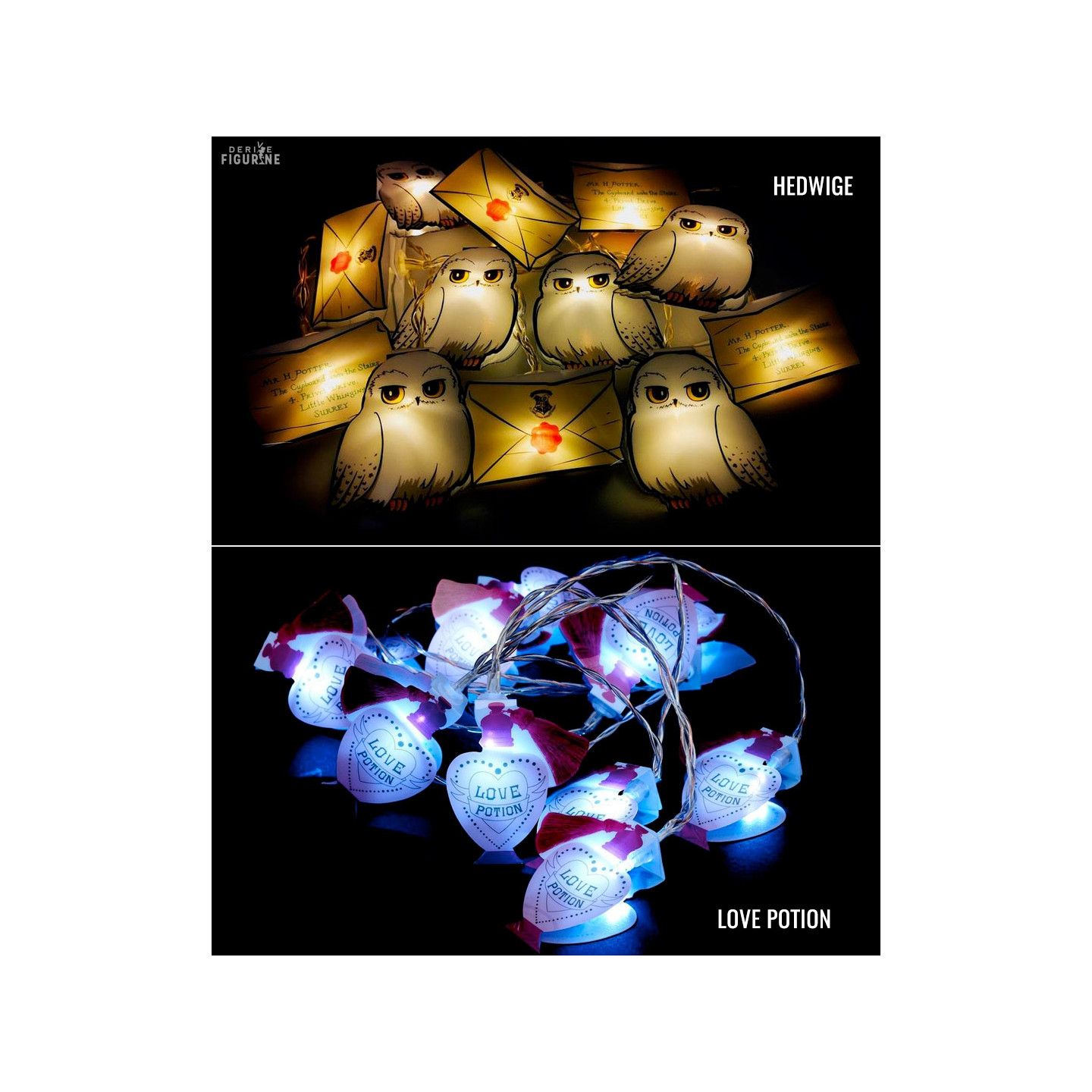 Want to add a touch of decoration and light to your interior? In this case, why not put one of these two lights garlands. You have the choice between Hedwig's version with the Hogwarts letter, or more simply, the Love Potion.