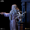 Wand raised and robes flowing, he stands on a richly detailed base with stone textures and an elegant rug. This isn’t just Dumbledore—it’s the essence of his role as mentor, protector, and master wizard.