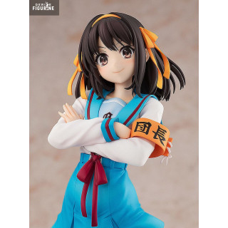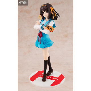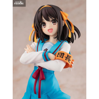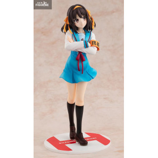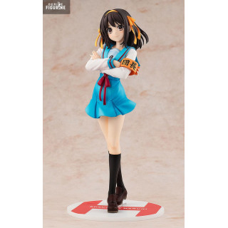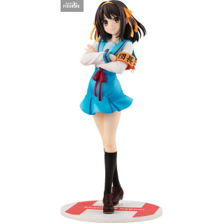 Official figure of Haruhi Suzumiya in PVC which measures approximately 23 centimeters high, scale 1/7. The manufacturer is Kadokawa.