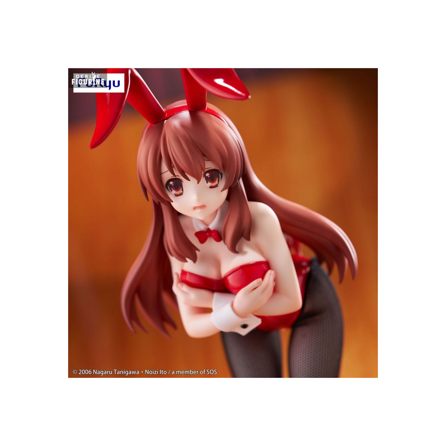 In this BiCute Bunnies collection version, Mikuru Asahina is depicted in an enchanting bunny girl outfit. Her posture reflects her natural shyness as she holds a vibrant red heart against her chest. The outfit, typical of bunny girls, includes fishnet stockings and accessories like red bunny ears and a bow tie. This figure perfectly captures Mikuru's delicate personality while adding a touch of elegance and charm.