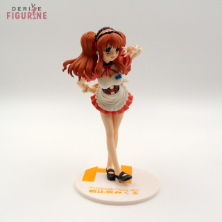 Second-hand and official Mikuru Asahina figure in PVC about 19 centimeters high to scale 1/8. Mikuru is in a pink and white waitress outfit. This is second-hand item in perfect condition. The manufacturer is Max Factory, sold with box in fairly good condition.
