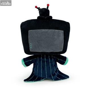 The Hazbin Hotel universe, created by Vivienne Medrano (VivziePop), immerses fans in a chaotic underworld where demons battle for supremacy. With his TV screen face, glowing red eyes, and devilish grin, Vox embodies technology and mass communication in its most sinister form. His sleek yet cyberpunk-inspired design is perfectly captured in this plush, complete with his signature red bowtie and stylish suit.