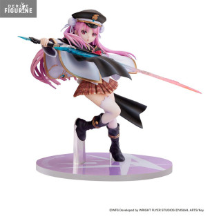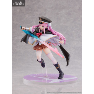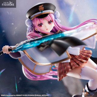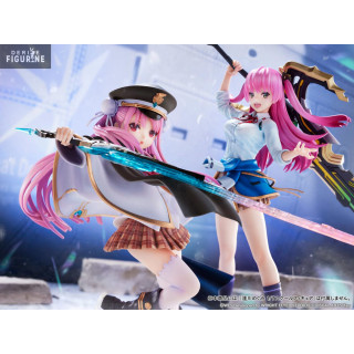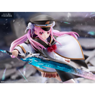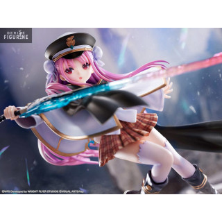The Tama Kunimi figurine from the Heaven Burns Red video game features Tama in a dynamic pose, armed with her sword. Despite her appearance, she is actually a former battleship captain, defeated in a battle at the Sea of Okhotsk. Tama is naturally airheaded, but she doesn't seem to realize this trait. She has great admiration for her teammate from Group 31A, Megumi Aikawa, who always protects her. Plus, she's complex about her short stature, which adds an interesting dimension to her development as a character in the game.