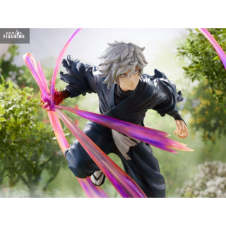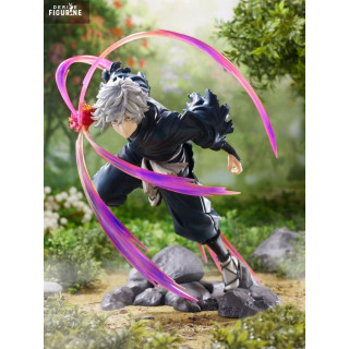 This 1/7 scale PVC figure, made by FuRyu as part of the F:Nex collection, stands about 20 cm tall. Gabimaru launches from a rocky base, surrounded by sculpted energy effects that add real motion to the scene. His midnight blue robe, wrapped bandages, silver hair, and piercing gaze are all finely detailed. A striking piece, caught in the moment before chaos — essential for fans of this complex ninja.