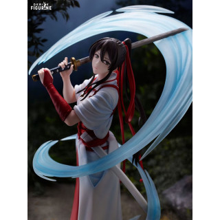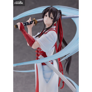 This 1/7 scale PVC figure, made by FuRyu as part of the F:Nex collection, stands about 23 cm tall. Sagiri wears her traditional white and red attire, hair tied in a long ponytail, sword raised with grace. The minimalist base lets the swirling blue effects shine — evoking motion, clarity, and inner resolve. A figure as elegant and composed as Sagiri herself.