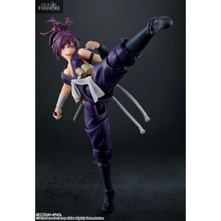 In Hell's Paradise: Jigokuraku and during the exploration of the mysterious island of the group Paradis in search of the elixir of immortality, the beautiful and sexy kunoichi Yuzuriha is in charge of monitoring the actions of Senta. She is therefore wearing her usual outfit here and is sold with various accessories for the S.H. Figuarts collection.