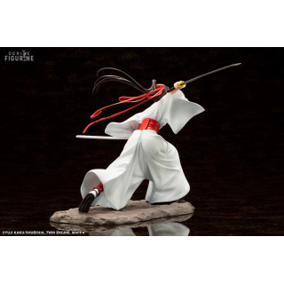 Present in the anime Hell's Paradise, here is the figurine of Sagiri Yamada Asaemon in the ARTFX collection. This figure showcases the iconic character of Sagiri Yamada Asaemon, one of the Asaemon, ruthless enforcers in service to the Shogun. In a dynamic pose, she proudly brandishes her katana, ready to carry out her missions with determination. Sagiri's carefully sculpted details and determined gaze perfectly capture her warrior spirit and unwavering will. A must-have piece for Hell's Paradise fans, highlighting the dark and captivating universe of this anime.