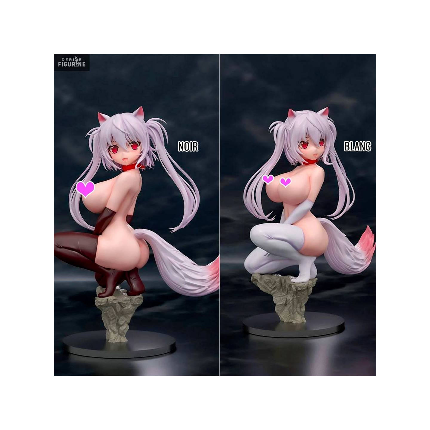 The young lady here is half human and half animal, and seeing her tail and her little ears, you might think that she is a fox. You have the choice between two different colors for her clothes, namely White or Black. In both cases, there are only 300 copies, so if you want her, you'll have to hurry.