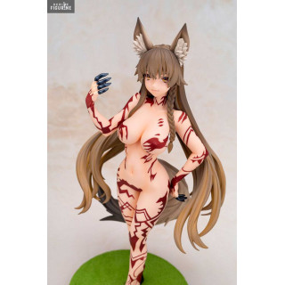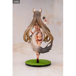 The beautiful statuette in front of you is half a woman and half a wolf. We can her ears as well as her tail which reminds the fact that she is not totally human. She also has red tattoos on her body which may disappear.