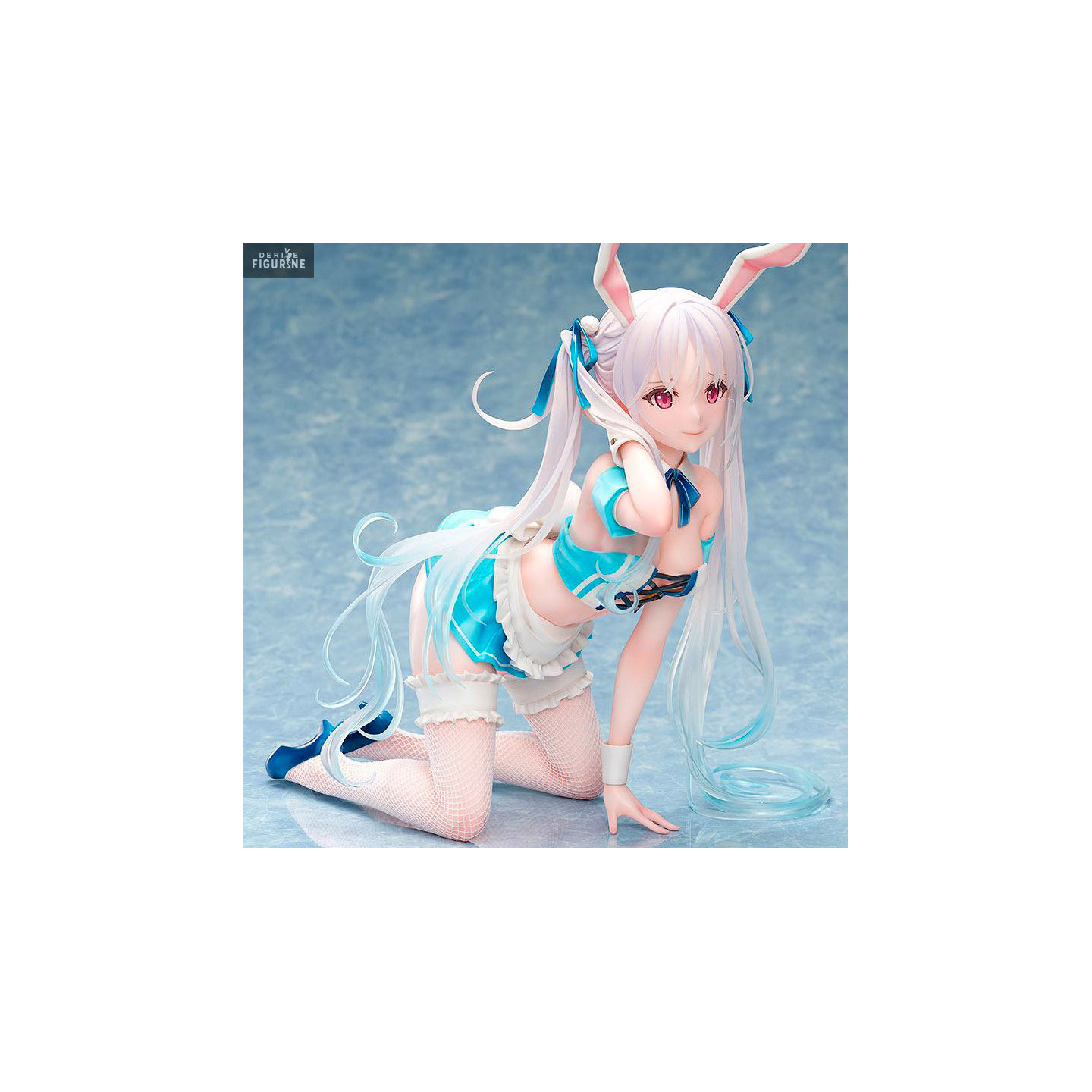 This young woman is what we call a bunny girl because she has bunny ears on her head, as well as a small tail at the bottom of her back. Her turquoise outfit really suits her and the nastiest of you will even be able to take off some of her clothes.