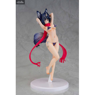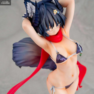 The young woman in front of you comes straight out of TKM's imagination. She is very pretty, but does not appear to be totally human, as you can see that she has a wolf-like tail and ears as well as horns on her head. In order to add some color, she put on a red scarf that you can take off her and the same goes for her top.