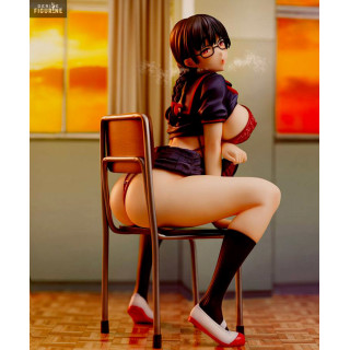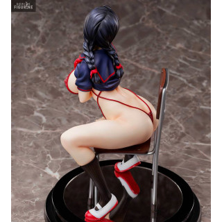 The youngster here is in schoolgirl outfit and yet it doesn't look like she's really focused on studying. In addition to that, know that it is possible to remove some clothes from her, but also to change the chair on which she is sitting. Finally, the mirror base will allow you to see the statuette from every angle.