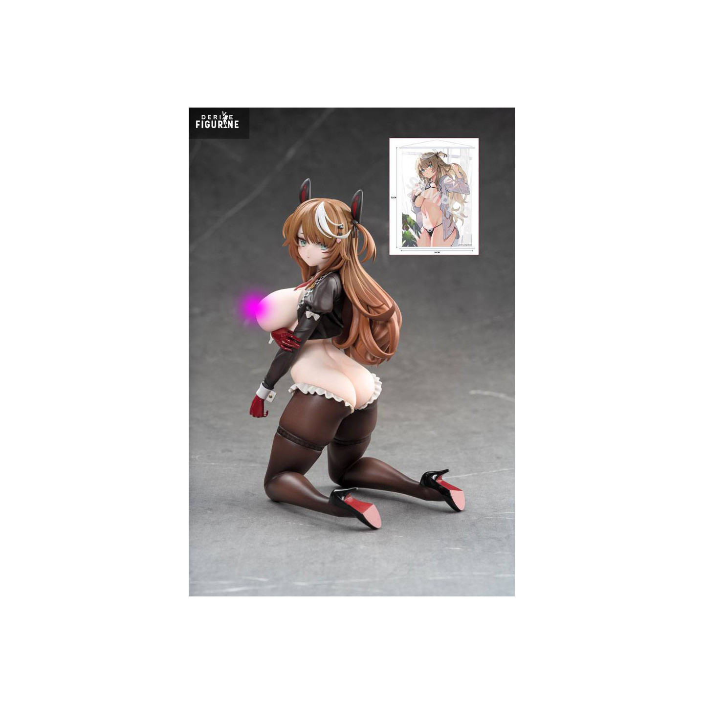 Simao Mochi, an original voluptuous creation, comes to life in this Bunny Girl DX figure with an irresistibly seductive style. Inspired by a sensual illustration, she kneels in a provocative pose that highlights her generous curves. Clad in a tight black bunny suit, complemented by sheer stockings and high heels, she perfectly embodies the glamorous aesthetic of bunny girls, with a mix of cool detachment and allure.