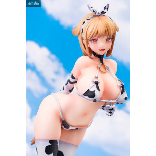 The young woman you have in front of you is very pretty and is dressed in a cow cosplay. If the basic animal is not the sexiest, this charming young lady really is. On top of that, you even have the option to take off some of his clothes. Plus, the base she sits on looks like grass, so it's really pretty and in-theme with the outfit.