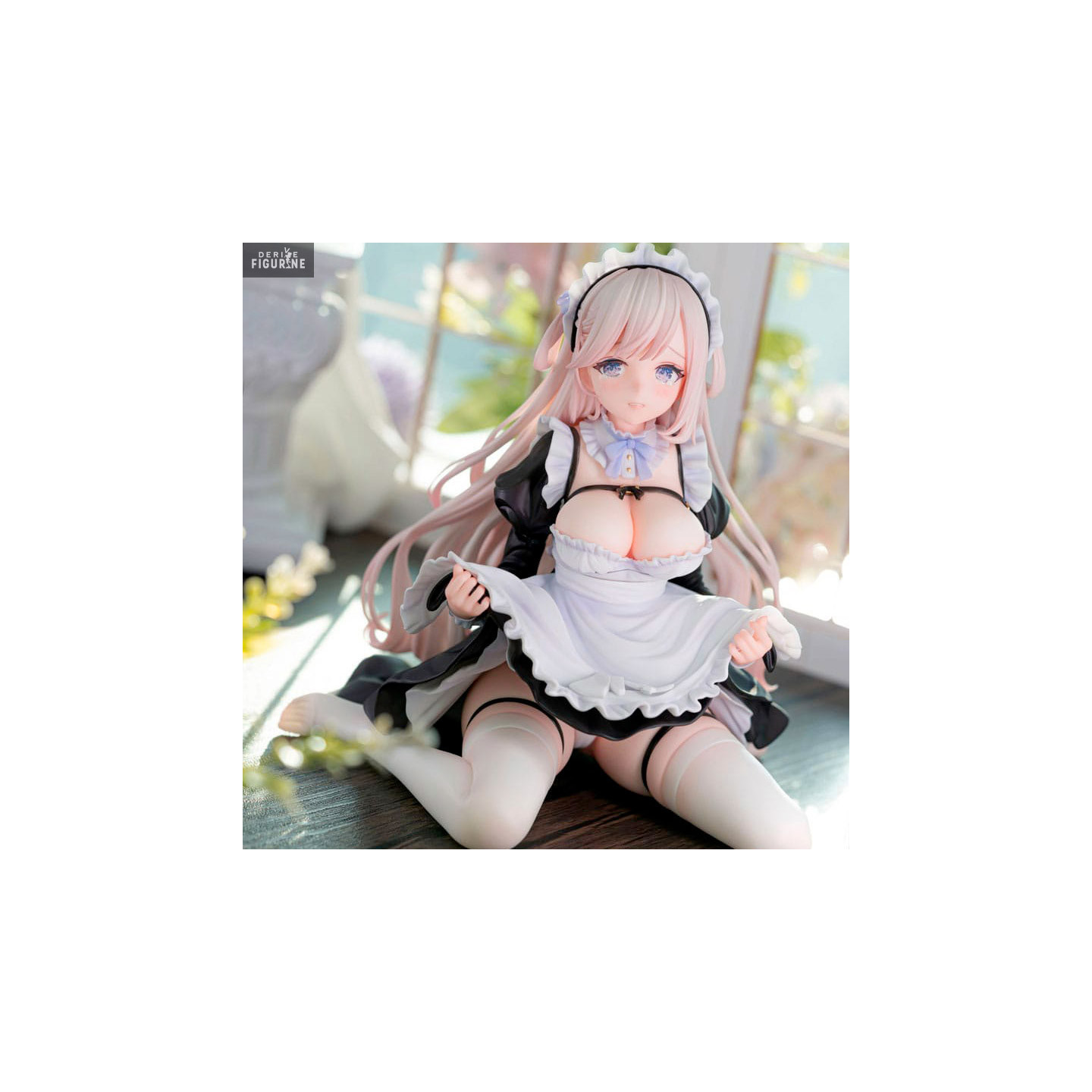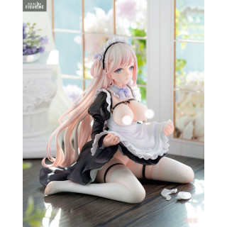Lily is a servant because she wears the outfit, but as you can see she is rather clumsy. She dropped a plate on the floor which shattered into a thousand pieces. We can see that this saddens her a lot since she has tears in her eyes. Maybe it's to make up for her little stupidity, but she lets you see her anatomy in a bit more detail if you want.