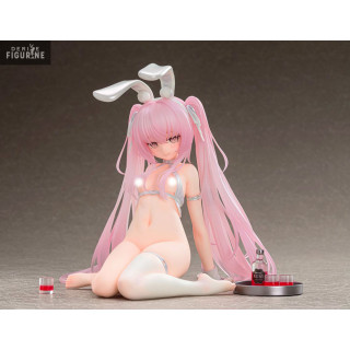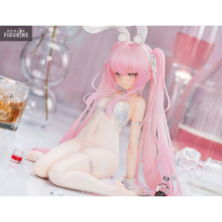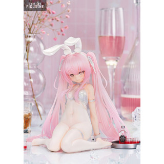 The “Ruby” figurine is an original creation that embodies elegance and seduction. Dressed in a white bunny costume, she adopts a kneeling pose that exudes an aura of charm. Her pink hair adds a pop of bright color to her appearance. But that's not all, as this figure also features a tray containing a bottle of Ruby and two glasses, which evokes an atmosphere of celebration and shared fun. There is even a third glass, leaving room for the imagination to interpret this scene. Overall, the "Ruby" figure captures the playful and sensual spirit of the character, creating a collector's item that is sure to spark the admiration and envy of all figure lovers. A work that evokes sophistication and festivity in an artistic format.