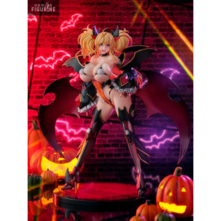 Kirara Onisaki, a character from Taimanin RPGX, is a student at Gosha Academy and a half-Oni and half-human hybrid. She inherited the powers of her mother, a high-ranking Oni known as the "Frost Phantom", as well as the ninja arts of her father Taimanin. Kirara has horns growing from the sides of her head, a characteristic of the Oni, but she has always had a complex about them since childhood. To conceal them, she usually hides them under large ribbons and tufted quilts. Kirara harbors an aversion to men and considers all men to be animals. She possesses the power to manipulate cold air, which she inherited from her mother. This power is so powerful that she can freeze moisture in the air in an instant to create an ice shield, or freeze an enemy with her fists wrapped in cold air. However, following an argument with her father, she sealed her ninja art and refuses to use it, so few people know what type of ninja art she practices. This Kirara Onisaki figure in Halloween Vampire costume likely captures her charm and power, although I don't have specific information on the figure itself.