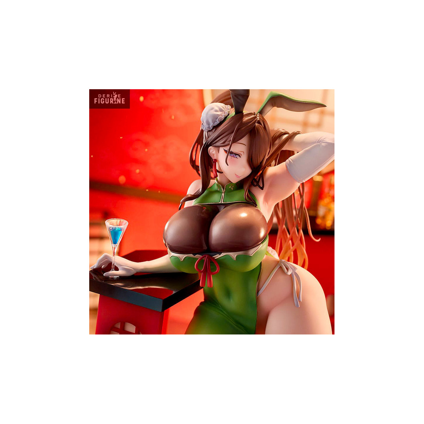 Dive into the mysterious and captivating world of our original figurine, Sumire, in her "Hush-hush Cocktail" version. This unique creation transports the imagination into a world where elegance and mystery meet. Sumire, with delicate bunny ears, sits gracefully on a bar stool, creating an intriguing atmosphere. His posture, leaning on his elbows, evokes an aura of confidence and discreet charm. A glass sits carefully on his table, ready to be raised in secret celebration. Sumire's outfit is a subtle mix of colors, with a captivating top in deep green that contrasts with the pure white of her tights, gloves and underwear. Every detail, from the delicate folds of her outfit to the texture of her gloves, is meticulously reproduced to bring a touch of realism to this original creation. In addition, it is even possible to remove certain clothes... This Sumire figurine - Hush-hush Cocktail, goes beyond the visual aesthetic to capture an implicit story. The rabbit ears suggest an element of mystery, while the bar scene evokes intimate moments in an elegant setting. Whether you are a passionate collector of original works or a lover of refined details, the Sumire figurine - Hush-hush Cocktail is a piece that is sure to arouse admiration. Add this unique work to your collection and let yourself be carried away by the story that each detail tells.