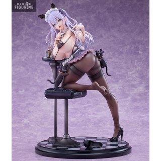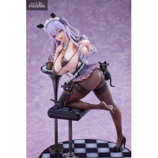 Mia, the protagonist of this figurine, is depicted elegantly, dressed in her servant uniform, while two playful little cats happily climb on top of her. The casual pose of leaning on the stool creates a delicate atmosphere, adding a touch of charm and realism to this work of art.