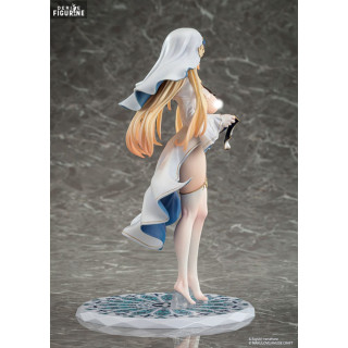 Charlotte, with her long golden hair and captivating emerald green eyes, wears an outfit that mixes purity and elegance. The fine details, from the delicate cross adorning her bodice to the flight of her azure cape, make this figurine a work of art in its own right. The costume, worked with care, both reveals and respects the nobility of this character, giving him an appearance that is both mysterious and seductive.