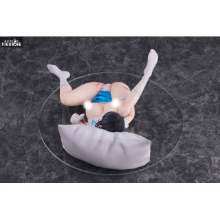 The figurine depicts a girl from the future, capturing the imagination with her bold design and suggestive poses. Dressed in a futuristic uniform, every element of her outfit is carefully detailed, from the folds of her clothing to the subtle nuances of her colors. The figure's reclining pose, accompanied by a pillow, adds a touch of realism and comfort, creating a scene that seems taken straight from an intriguing sci-fi story.