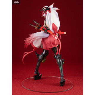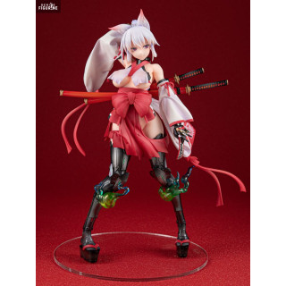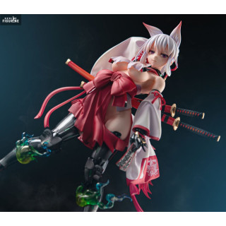 Inspired by an original creation by Grizzry Panda, Agano embodies a fascinating blend of traditional and futuristic. She is represented with fox ears, a miko (Shinto priestess) outfit revisited in a modern way and cybernetic limbs. This juxtaposition of styles gives the figure both a mystical and high-tech appearance, captivating for collectors.