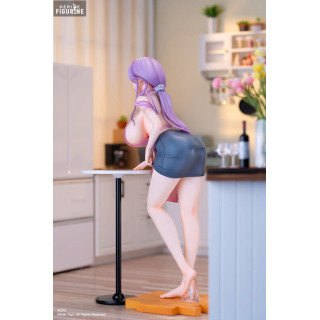 Kyou no Yuushoku Yuki is depicted here in a seductive pose, leaning on a table with a sweet and captivating expression. Her stylish looks and confident attitude are reflected through her bold and detailed outfit. The fineness of her dress, combined with the realistic texture of her clothing, highlights her curves and adds an extra dimension to this already impressive figure.