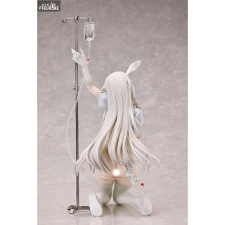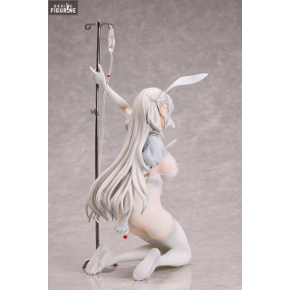 Ruby, shown here in a white rabbit outfit, embodies a look that is both sensual and mysterious. The figure is depicted in a suggestive pose, kneeling and holding an IV, adding a touch of intrigue to his appearance. The figure is dressed in a form-fitting bunny costume, with carefully sculpted details that highlight the character's curves and grace. The texture of her clothing, combined with the medical accessories, creates a fascinating contrast between innocence and provocation.