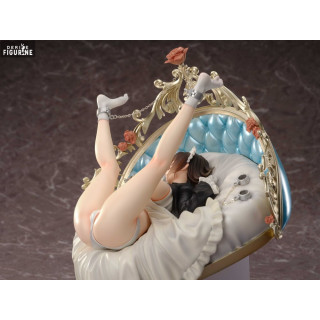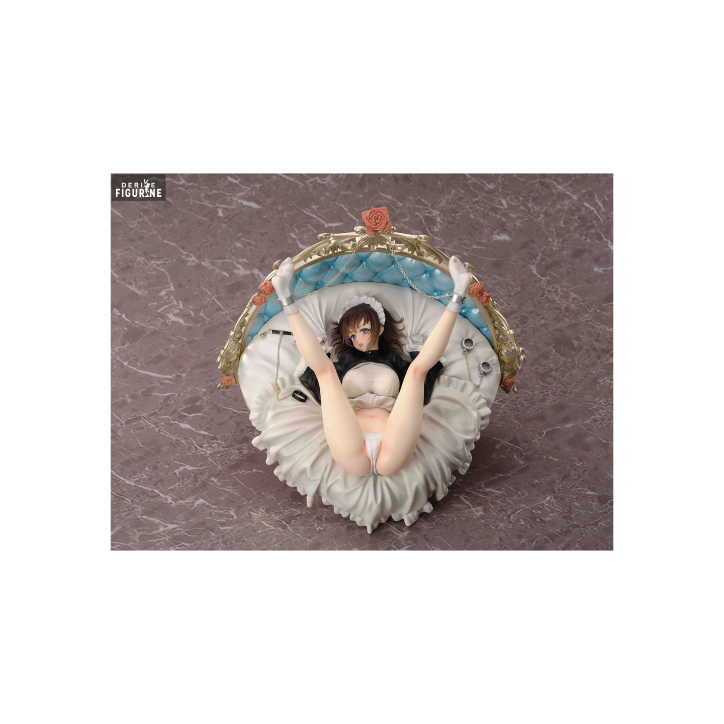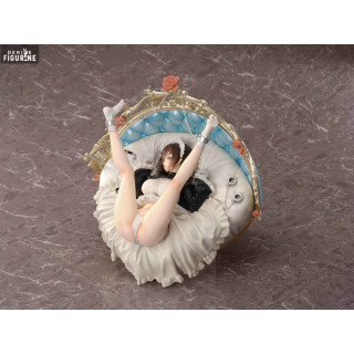 Tsubaki's pose is both provocative and elegant, with her legs raised and bound by handcuffs, adding a touch of mystery and seduction to the whole. She rests on a detailed cushion, decorated with roses and baroque elements, creating an interesting contrast with her modern maid outfit. This sophisticated staging makes it a centerpiece for any collection.
