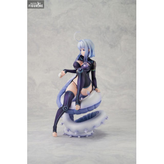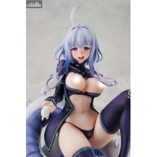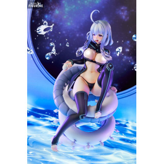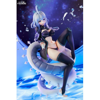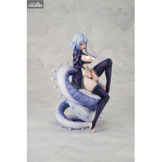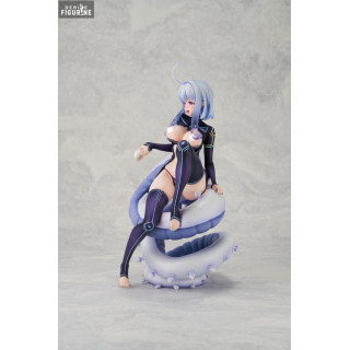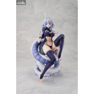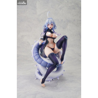 UMA-chan is depicted in a dynamic and seductive pose, gracefully seated while wrapping her serpentine tail around herself. Her futuristic outfit and captivating facial expression illustrate both strength and femininity. The meticulous details of her hair, clothing, and scaly tail showcase great craftsmanship and exceptional attention to detail, making this figure a true centerpiece for any collector.
