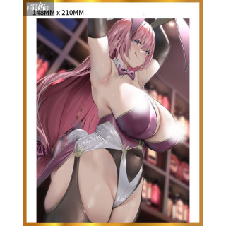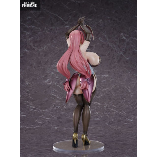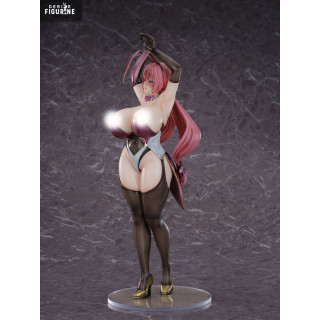This figure represents the original character "Bar Bunny," illustrated by the artist oekakizuki. With her provocative and seductive appearance, this piece immediately captures attention. Bar Bunny stands out with her mischievous look, confident smile, and boldly daring style. In this version, she is dressed in a bar bunny outfit, embodying the charm and glamour associated with this aesthetic. Her long pink hair adds a touch of sensuality and fantasy to her pose. The costume, composed of a shiny black bodysuit, black stockings, and golden heels, accentuates her silhouette and gives her an elegant, captivating presence. The bunny ears, combined with a small bow tie, add a playful touch to the whole, reinforcing the sophisticated yet whimsical aspect of the character.