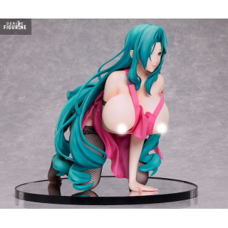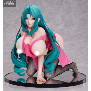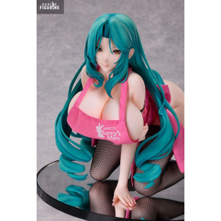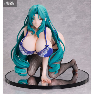 Kana Joudohama is an original character created by BINDing, renowned for their detailed and daring figurines. Kana embodies a charming young woman presented in an elegant yet sensual pose. Her finely sculpted face, paired with long, flowing turquoise hair, immediately captures attention. Her soft, almost mischievous expression reflects both calm and confidence. Kana wears a unique outfit consisting of a bright pink apron with the inscription “Bunny’s Mam,” which subtly reveals an ornate blue bikini underneath, adding a casual yet sophisticated touch to her overall look.