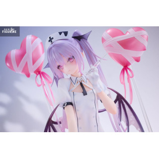 Rurudo's artistic universe is known for its delicate, gothic aesthetic, where each character radiates elegance while flirting with darker undertones. With Eve Sweet Toxic, this dreamlike world comes alive through symbolic motifs: the heart-shaped balloons surrounding her and the small black wings attached to her outfit enhance her angelic charm tinged with a devilish allure. The contrast between pastel colors, the pristine white of her uniform, and the soft pink touches on the base create a bittersweet atmosphere reminiscent of modern and refined illustrations.
