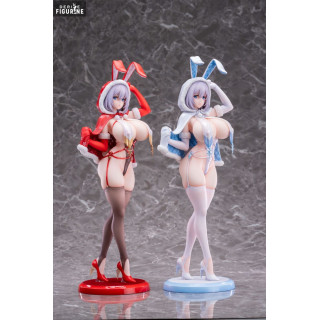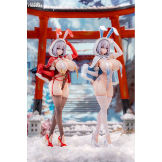 The Snow Bunny Deluxe figures, illustrated by the talented artist Mataro, capture the elegance and charm of an original design infused with wintry softness and a sensual touch. Available in two distinct versions, red and blue, these representations showcase a graceful and alluring woman dressed in an outfit blending the classic bunny theme with the snowy hues of the winter season. Delicate details, such as sheer stockings, fur-trimmed hoods, and matching heels, reflect meticulous craftsmanship.