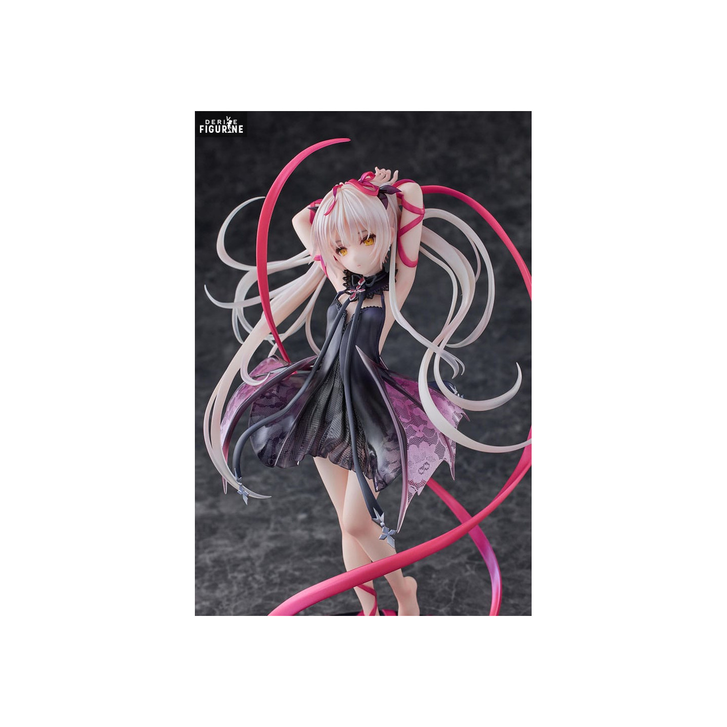 Lilitics is depicted in an elegant pose that showcases her enigmatic allure. The flowing ribbons add a sense of movement and grace, while her dark outfit, adorned with intricate patterns, contrasts beautifully with her long white hair and piercing golden eyes. The figure also offers an alternative display option for collectors looking to further appreciate the artistic details of this masterpiece.