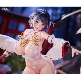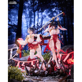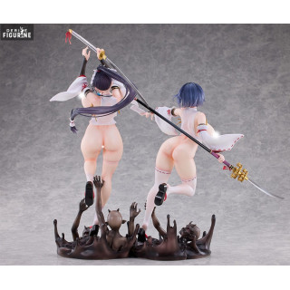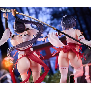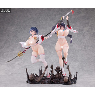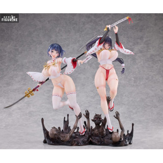 Sakuya Todo and Iori Todo make a striking duo in this exclusive set, combining fierce visual energy, dynamic action, and unapologetic sensuality. These original characters, born from a world where shrine maidens battle dark supernatural forces, represent two sides of the same coin. Sakuya, the older sister with a piercing gaze, readies her katana mid-air for a decisive blow, embodying strength and control. Beside her, Iori leaps forward with a talisman in hand, her expression playful yet focused, full of vitality and spirit.