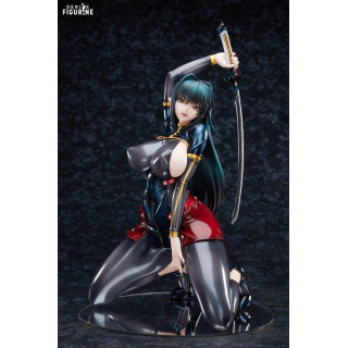 The clear base highlights her deadly elegance without distracting from the intricately engraved hilt and the lacquered finish of her outfit. Every fold of fabric and strand of her long dark hair is sculpted to convey the dynamic tension of her martial art, poised between restraint and explosive action.