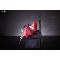 In this standard version, the Night Queen features long crimson hair that amplifies her demonic aura. Her pale skin contrasts with black lace lingerie and her red succubus wings, highlighting her sensual yet intimidating nature. Her piercing red eyes and sly smile perfectly capture her dominant allure.