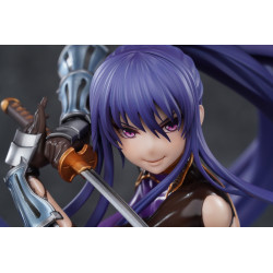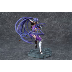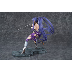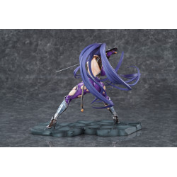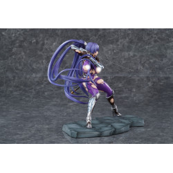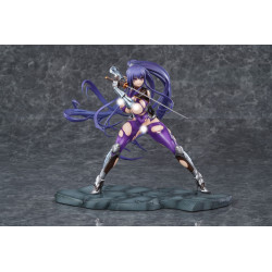 Rinko Akiyama appears here in her Battlesuit version, ready to jump straight into the fight. This official PVC figure stands about 23 cm tall in 1/6 scale and is manufactured by Pure. She’s posed in a wide battle stance on a stone-like base, giving the whole piece a strong presence and a real sense of action.