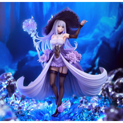 From the very first glance, Barayukihime looks like an elegant winter witch captured in the middle of a spell. This official PVC figure stands about 38 cm tall in 1/6 scale and is produced by Native. Resting on a base shaped like a burst of icy crystals, she wears a wide-brimmed witch hat and a flowing cape that immediately give her a magical, snow-themed presence.