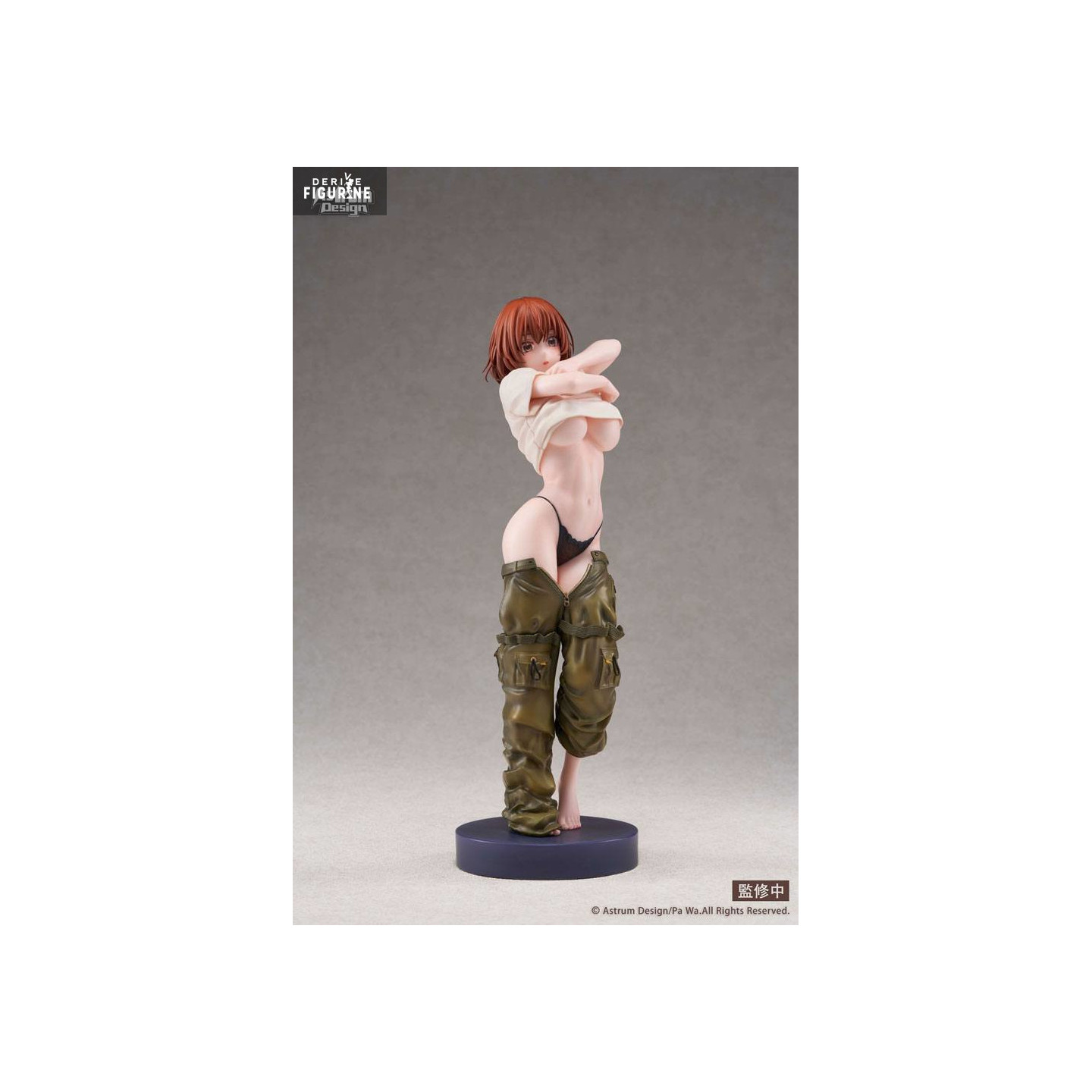 From the artistic universe of the talented Piroya comes Pawa, captured in a bold and highly realistic pose. This standard version depicts Pawa mid-motion, lifting her t-shirt in a casual, uninhibited gesture that reveals her black lingerie and partially lowered military-style pants. Her direct gaze and finely sculpted curves highlight the strong expression of the piece while staying true to the original illustration’s aesthetic.
