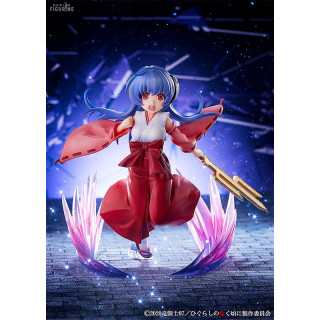 Furude Hanyuu is Rika's ancestor, yet she transfers to Matsuribayashi's school. She seems to be polite and calm, even sometimes shy, but beware because when she gets angry, she is a real demon. By the way here you can see her red pupils, her sword in her hand and pink/purple flames around her.