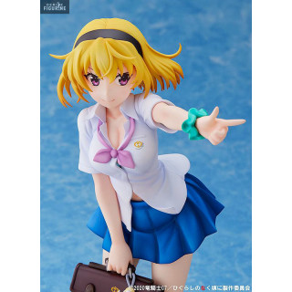 In the sequel to Higurashi: When They Cry called Sotsu, we find the beautiful young woman named Satoko Hojo as a figurine in this High School Student version and she is one of the inhabitants of the strange village of Hunamizawa. She is a girl who loves to prank Keichi and lives with Rika.