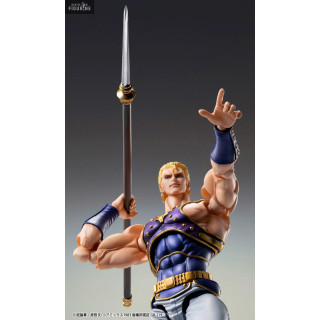 This 17-centimeter tall figure perfectly captures Souther's arrogance and strength, with his imposing armor and detailed accessories. From Medicos Entertainment's Super Action Statue (S.A.S) collection, this articulated model allows fans to recreate the character's iconic poses. The interchangeable faces included with this figure showcase his cold, calculating expressions as well as his battle-ready rage. Additional accessories, including his signature weapon, further enhance the immersion into the intense universe of Fist of the North Star.